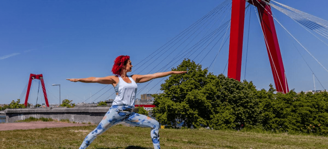 Kom kennismaken met yoga op een wel heel bijzondere plek in Rotterdam: de Stadstuin van de Rotterdamse Munt op Zuid.